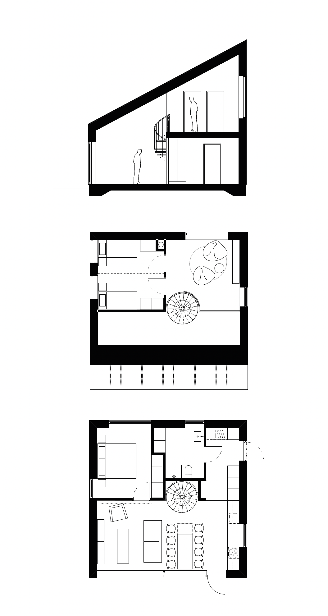 Vi ritade elva minivillor åt byggherren Panghus. Med husens inbördes placering slingrar de fram genom terrängen och skapar en spännande utemiljö. På sina 81 kvadratmeter rymmer huset två rum för umgänge och upp till tre sovrum. Allrummet med sin rymliga takhöjd gör att interiören upplevs luftig trots husets nätta storlek.