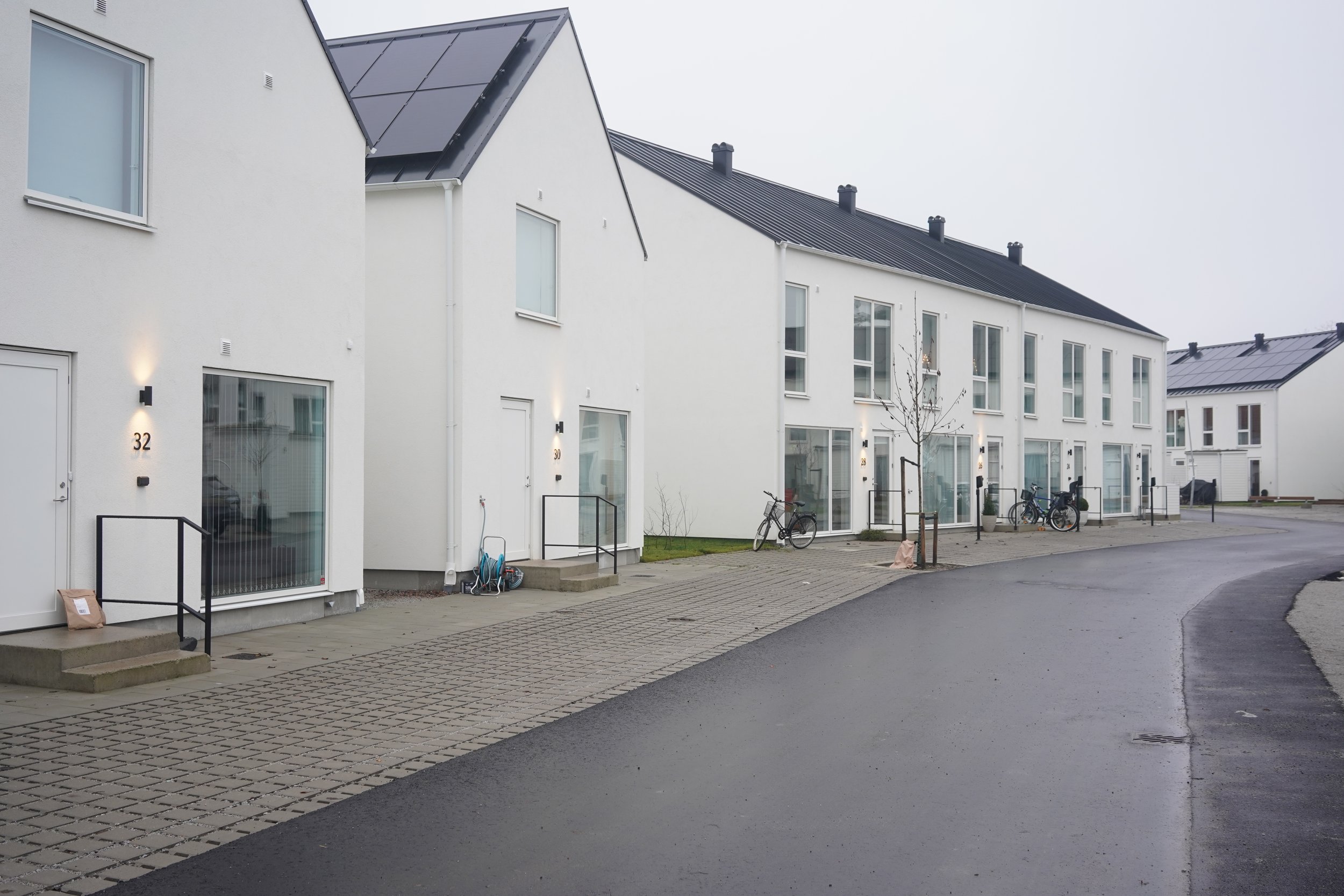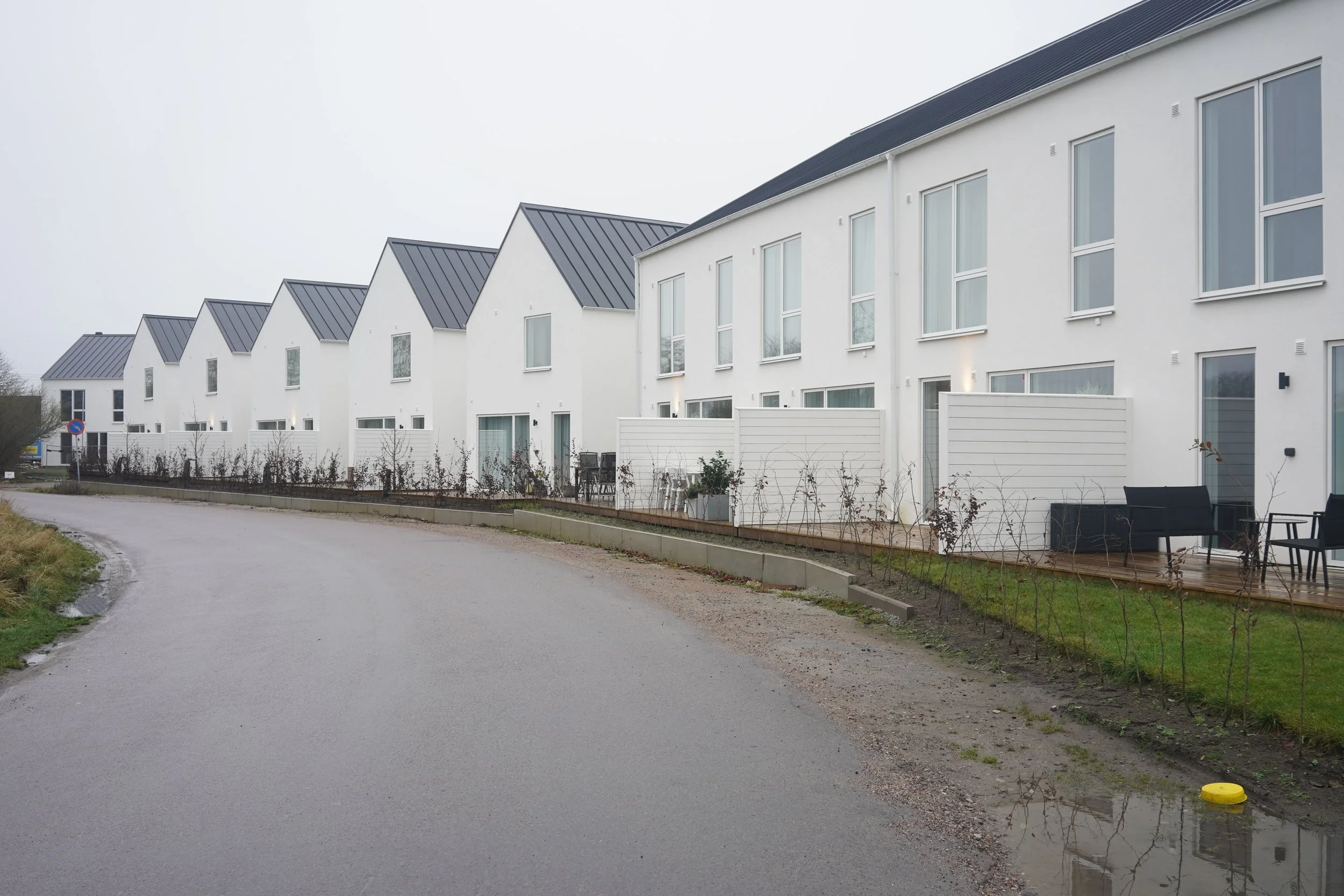 För Panghus ritade vi detta småhusområde, mittemellan Malmö och Lund. Området har slingrande gator, putsade vita fasader, solpaneler på taket och stora glaspartier med utblick mot det omgivande öppna landskapet. Gaturummen känns småskaliga och varierande tack vare husens vridning, vissa med sin gavel mot gatan och andra med långsidor mot gatan.