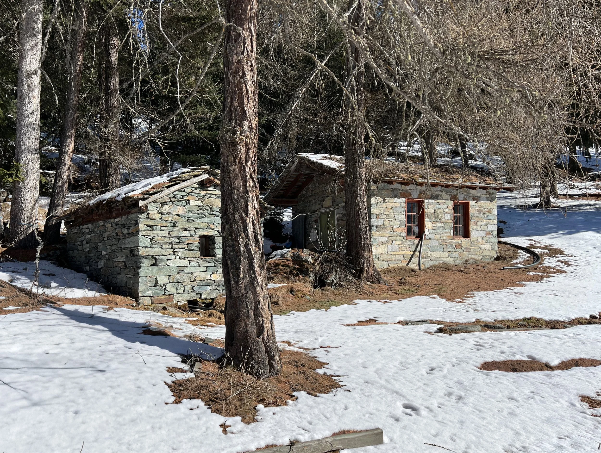 Pågående ombyggnadsprojekt av ett hotell i italienska alperna med utsikt över Monte Rosa.