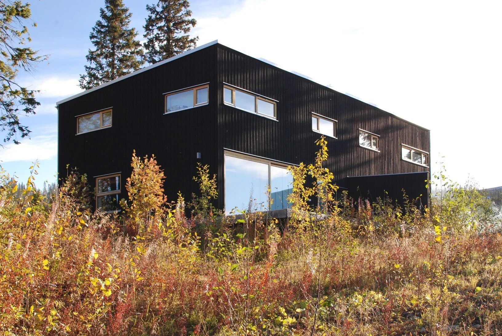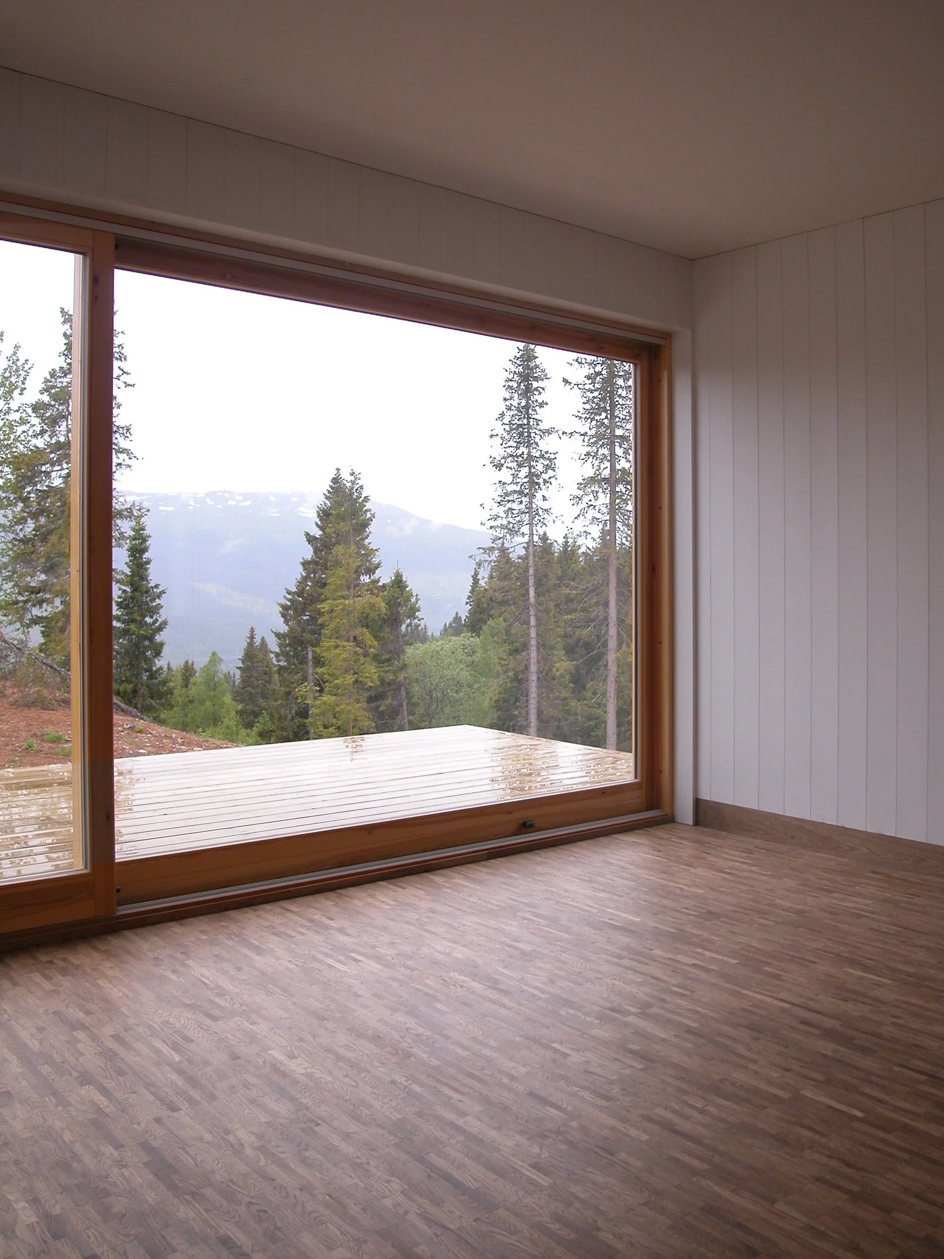 Det här parhuset ligger längst fram på bergsluttningen i Åre Björnen. Den effektiva planlösningen och husets bärande konstruktion möjliggjorde ett mycket kostnadseffektivt bygge. Allrummets stora fönsterpartier vänder sig mot den vackra utsikten.