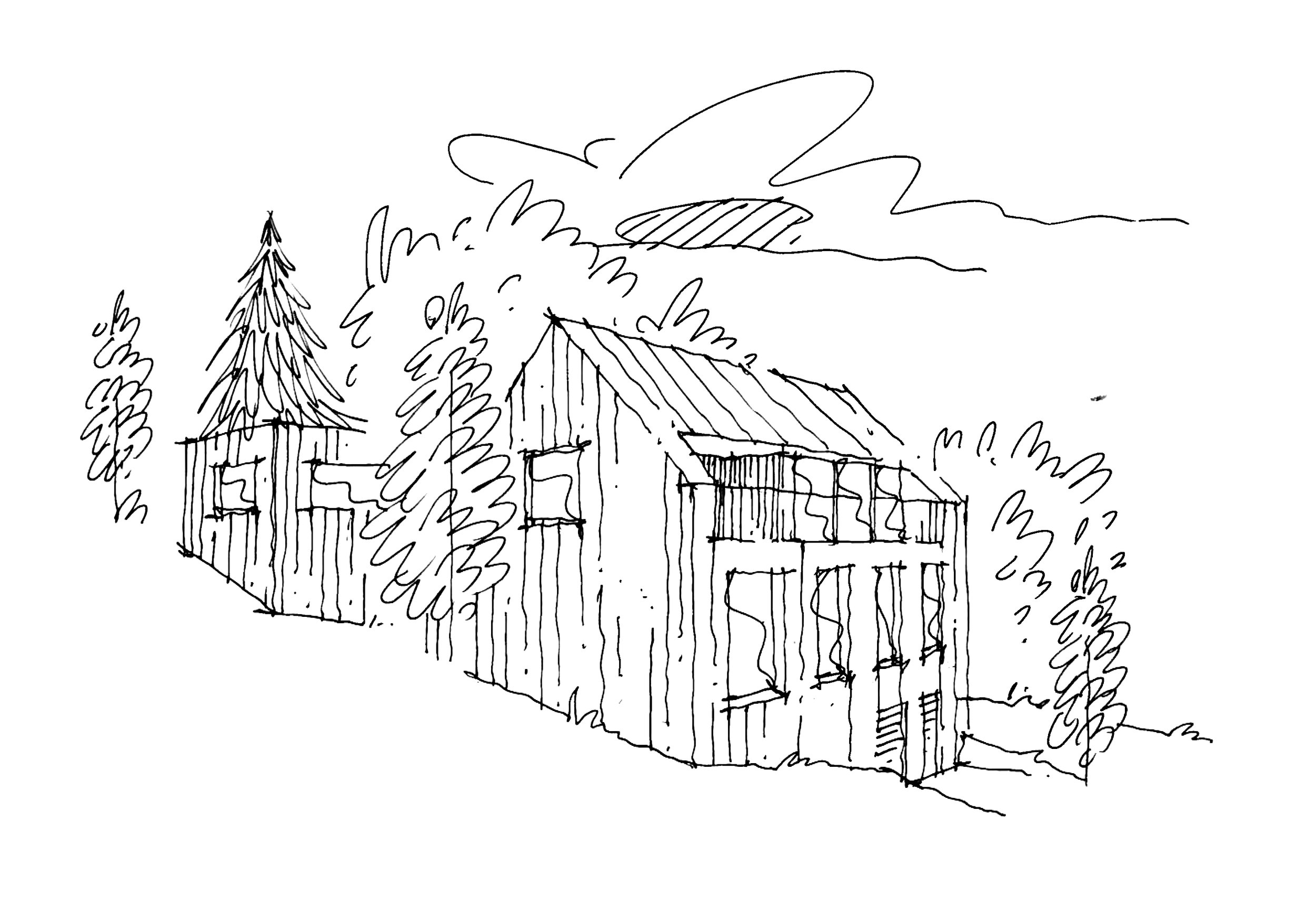 I en sluttning i Jämtland ligger detta timmerhus med utsikt över fjället. Elegant infogat i landskapet mellan björkstammarna når man entrén på nedre plan och de sociala delarna en trappa upp. Här finns vardagsrum och kök i en öppen planlösning med utblick över landskapet. I backen ovan finns ytterligare en komplementbyggnad med gästhus och förvaringsmöjligheter. Interiören är i naturträ. Projektet är under pågående arbete.