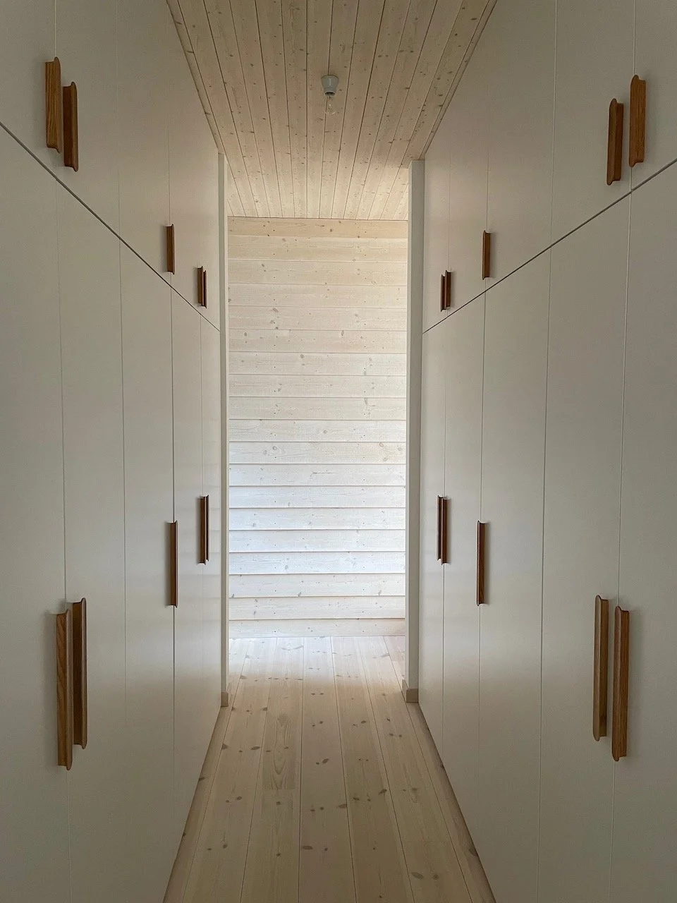 I ett område bestående av ängsmark och fårhagar invid en liten sjö ersatte det här huset ett uttjänt fritidshus från 40- talet. Huset är uppbyggt i två våningar kring kvadratens geometri. De sociala delarna, vardagsrum och kök är placerade i husets framkant och öppnar upp sig med stora glaspartier ner mot sjön. Stommen är av trä där limträbalkar i bjälklagen möjliggör stora spännvidder. Ytterväggarna är in- och utvändigt klädda med sågad fjällpanel. Allt trä invändigt är behandlat med vitpigmenterad lut och olja, utvändigt järnvitriol. En generös altan omger huset och formar sig efter landskapet. I uppdraget ingick även att rita en komplementbyggnad för traktor och redskap som gavs stora skjutpartier i faluröd panel.