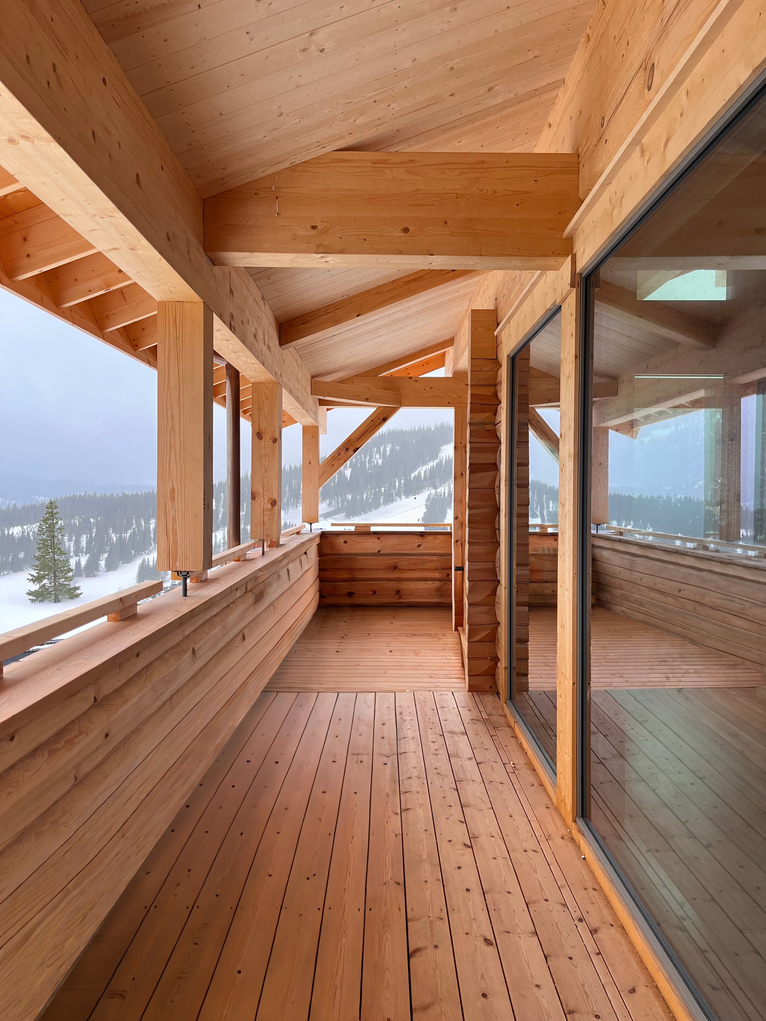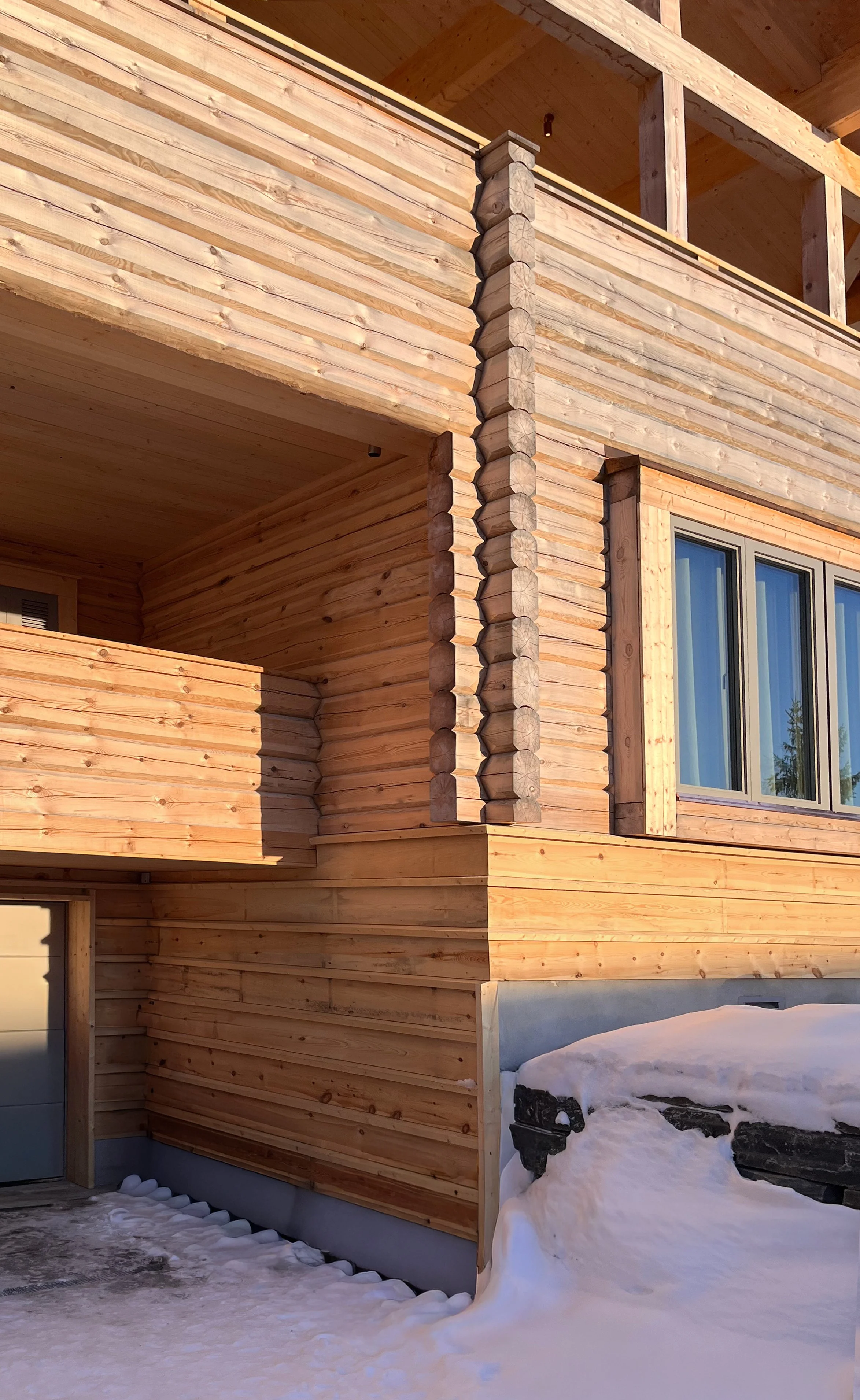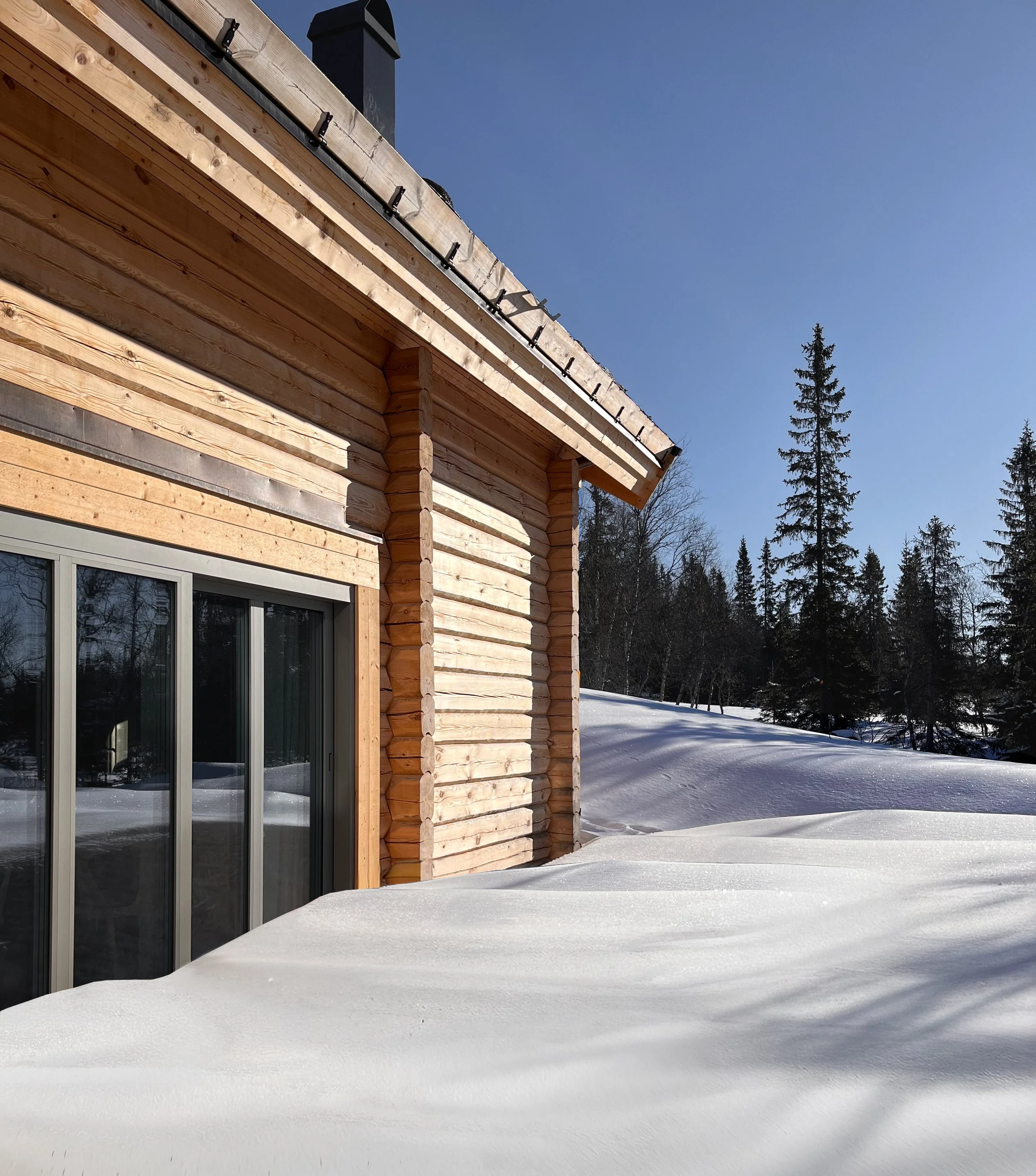 Den magnifika utsikten, relationen till omgivande natur och ljuset var viktiga för gestaltningen av detta hus, beläget uppe på en sluttning i Svenska fjällen. Huset är byggt i naturmaterial och stommen är timrad stock för stock i massiv furu. Den obehandlade fasaden kommer att gråna naturligt. Indrag i fasaden skapar liv och skyddade platser.